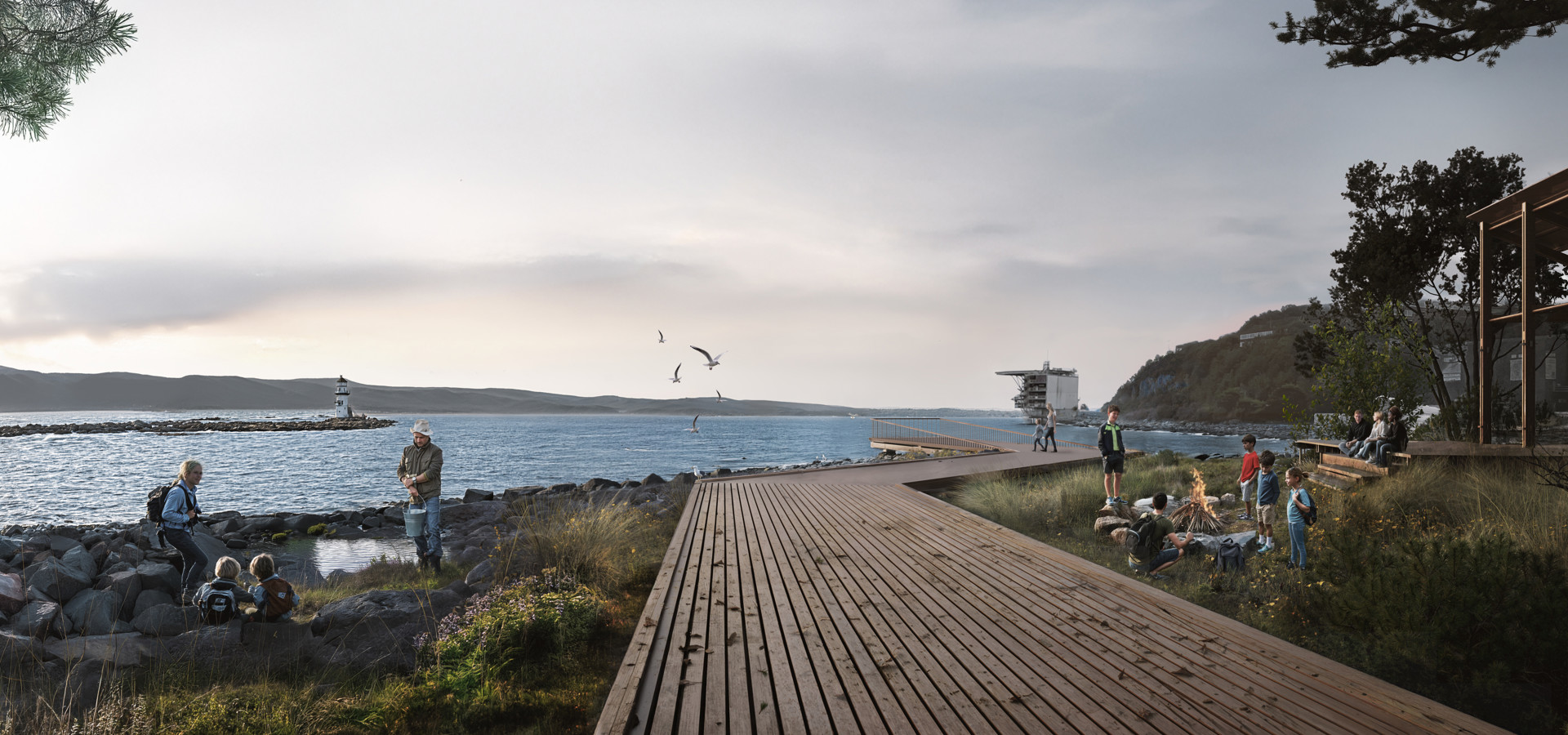 Ytterst på Transittkaia, der Nidelva renner ut i fjorden, planlegges Transittparken. Her ser arkitektene for seg en «Instagramvennlig destinasjon» med flott utsikt, eget utsiktspunkt og en paviljong som beskytter mot vær og vind.
