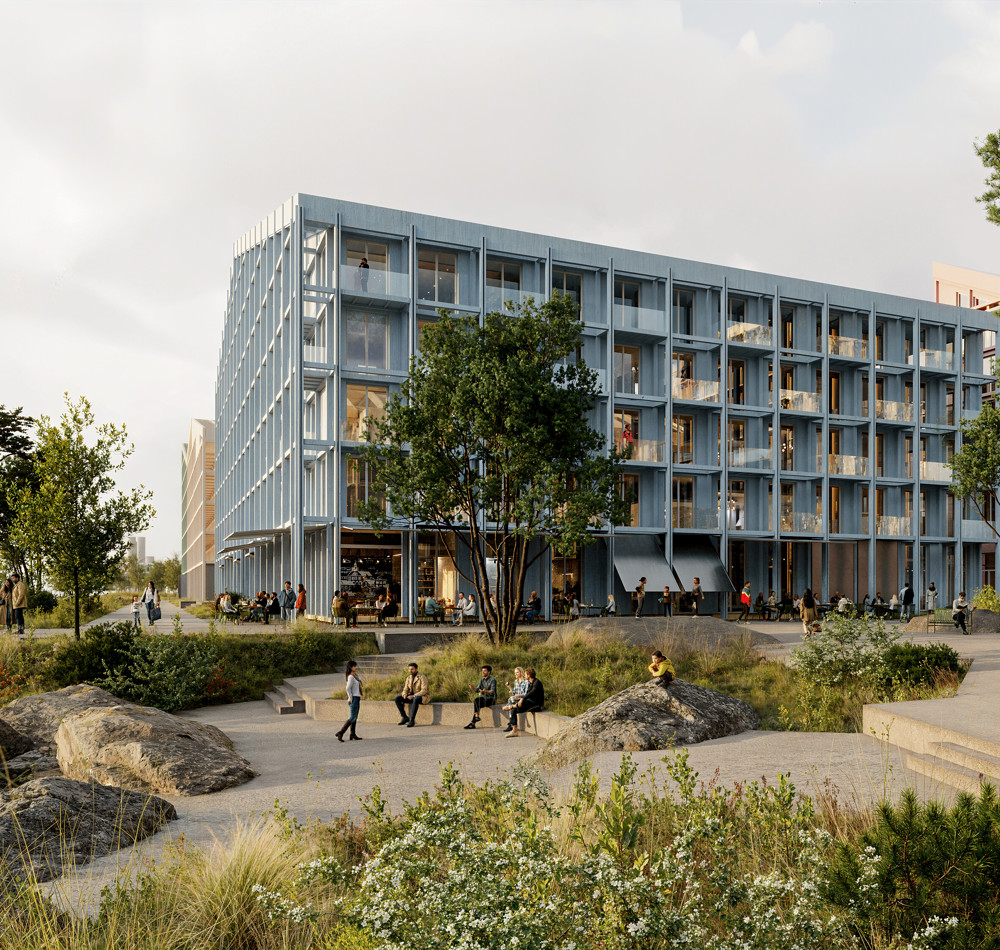 I tillegg inneholder planen et næringsbygg samt et mobilitetshus med parkering og mulighet for dagligvarebutikk samt leilighetshotell eller kontor.