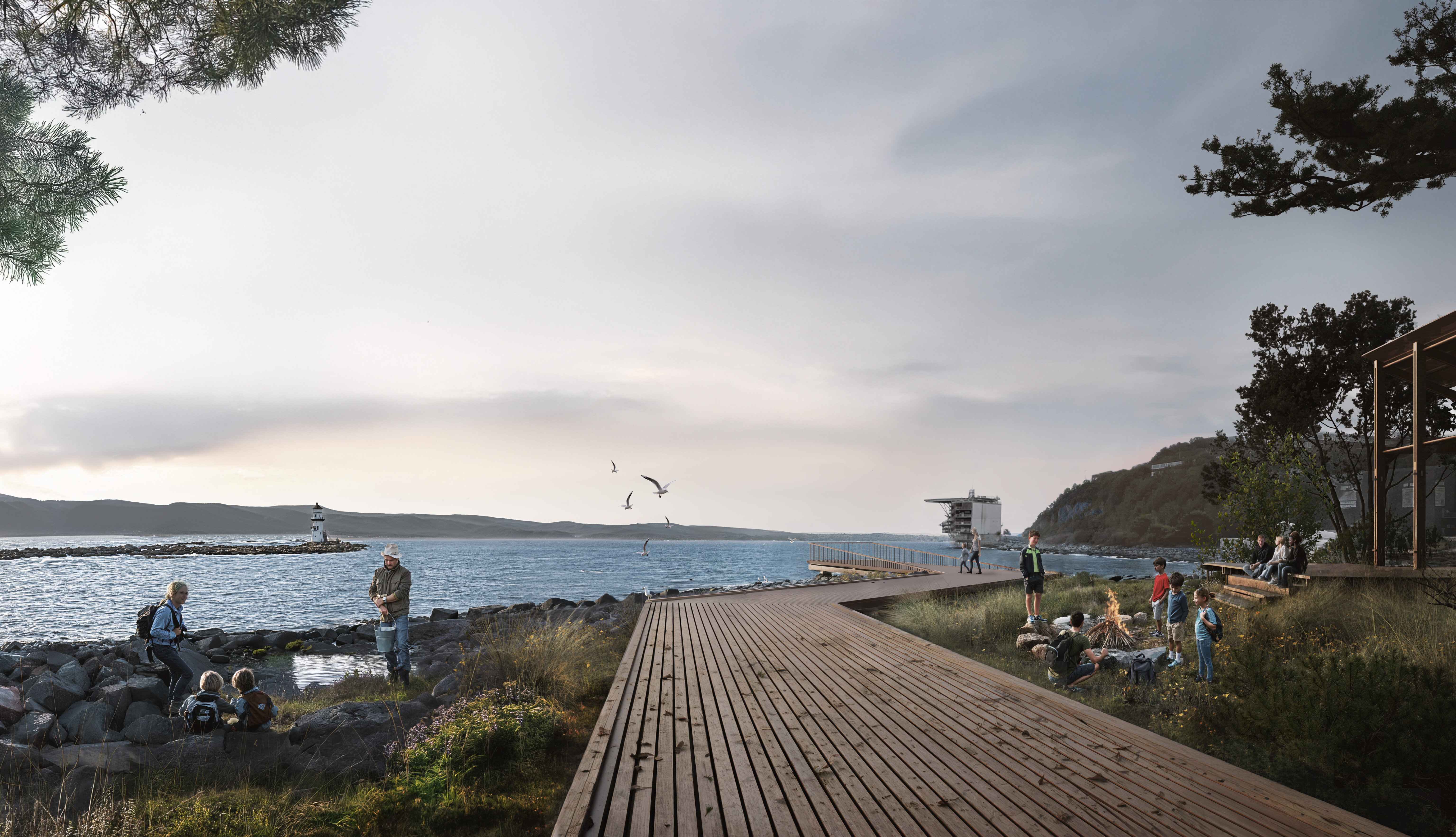 Elvepromenaden skal bli en grønn oase langs Nidelva, midt i byen! Her kan du allerede i dag gå, sykle eller bare nyte utsikten. Nå skal den bli langt mer enn bare en sti –en levende park med benker, lekeapparater, kunst og små overraskelser underveis. Elvepromenaden vil knytte seg sømløst til Doraparken med sine serveringssteder og aktiviteter og parken ytterst på Transittkaia hvor små og store barn inviteres til utforsking og lek.